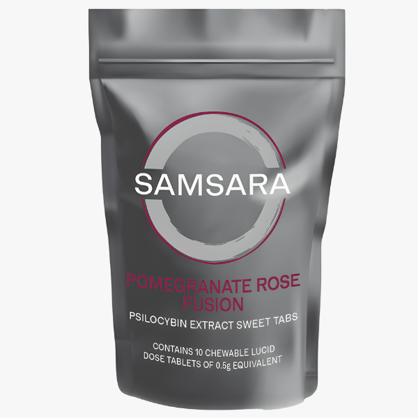Flavor Profile: Pomegranate Rose Fusion. A lush fusion of bold Pomegranate and elegant Rose dance together in beautiful harmony creating an experience that is rich and complex—just like the human experience Samsara represents.